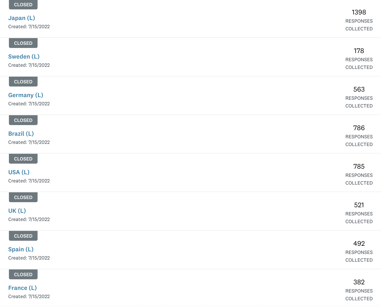 The marketing team tasked with writing the questionnaire and fielding the survey are English native speakers, who needed to prepare the survey in six additional languages by particular locales — Japanese, Brazilian Portuguese, German, European Spanish, French (France), Swedish — plus one other that required British English. The survey included logic, as well as questions ranging from single select, rank, sliding scale, and open-ended, which all needed to be QA’d, launched, and fielded within a 3-week turnaround time.
